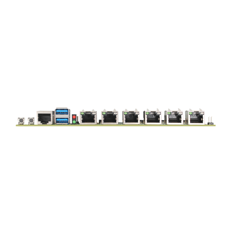 | I/O 接口 | 1*DC 12V 直流输入 1*COM ( RJ45 接口,支持 RS232 ) 2*USB3.0 6*LAN ( Intel i225/i226 2.5G 网口 ) 1*FP_BNT (开关) 1*RESET (重启) |